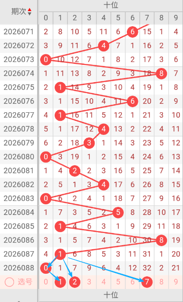 现在我给大家分析下,本期个位可能开出的号码,上期开出了8,076期开出了3号码球,077期开出了2号码球,078期开出了9号码球,079期开出了3号码球,080期开出了2号码球,081期开出了7号码球,082期开出了2号码球,083期开出了6号码球,084期开出了6号码球,085期开出了8号码球,086期开出了2号码球,087期开出了1号码球,088期开出了8号码球,跟据这几期的走势和历史30期内的走势对比,可以先考虑本期可能会出单号,下面我给大家推存个位可能开出的几个号,个人比较看好147,个位我们就先暂定这两个号。本期重点关1-7之间的号码,同时关注遗漏期数较大的号码。按最近遗漏走势,开了遗漏期数较大之后开遗漏期数小的可能性比较大。