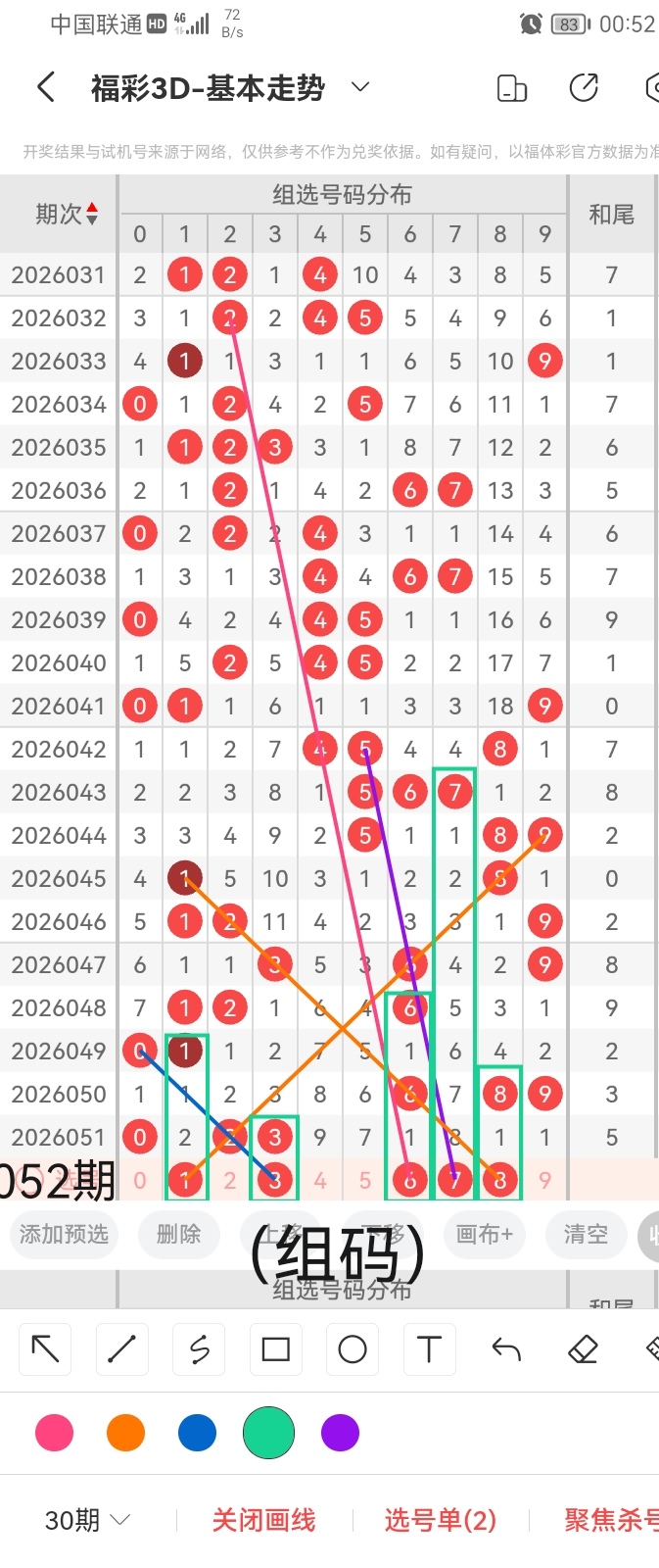 通过以上对上期的简单回顾,下面进入2026052期(下面简称本期)的选号分析:
