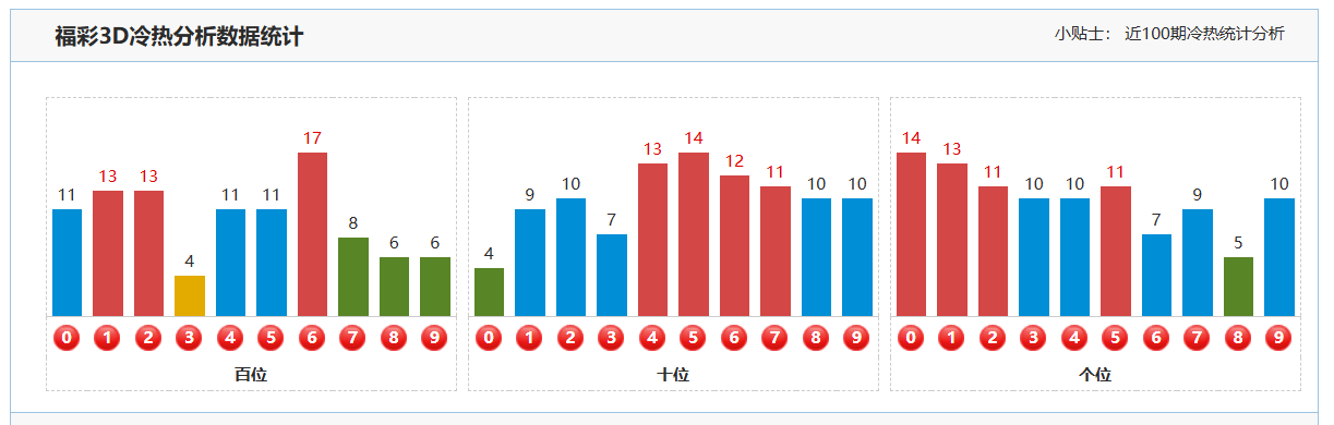 2. 十位分析:上期福彩3D的十位开出了号码5,这是一个大的奇数。从近期的开奖数据来看,十位号码在多个位置上频繁出现,表现出较强的活跃性。然而,值得注意的是,上期的十位号码振幅变化较大且呈上升趋势。本期在十位的分析中,我们预期该位会回补下降,即关注那些与上期相比数值有所减小的号码。因此,本期重点关注号码12345789