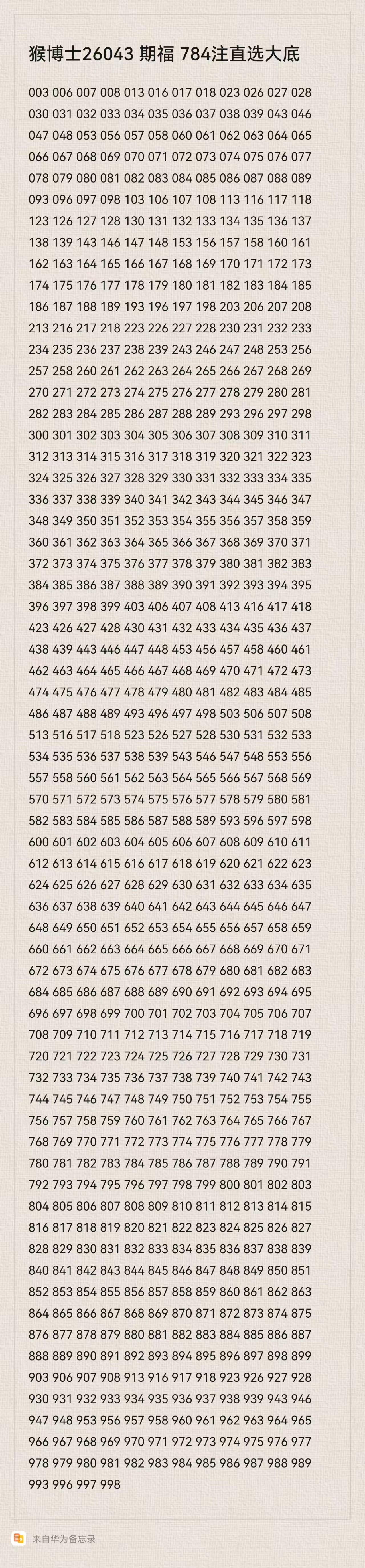 猴博士26043期福784注直选大底:(可以当母底用,然后进行缩水)