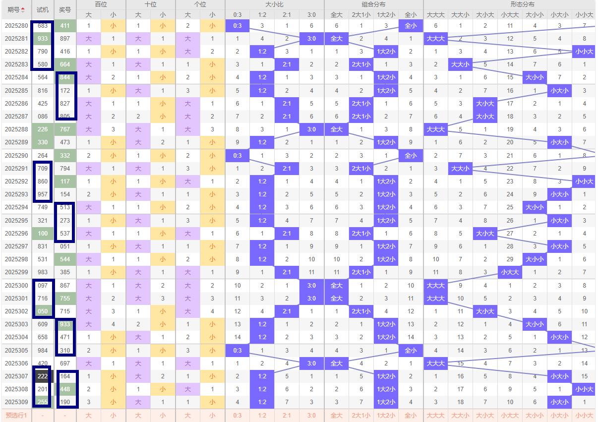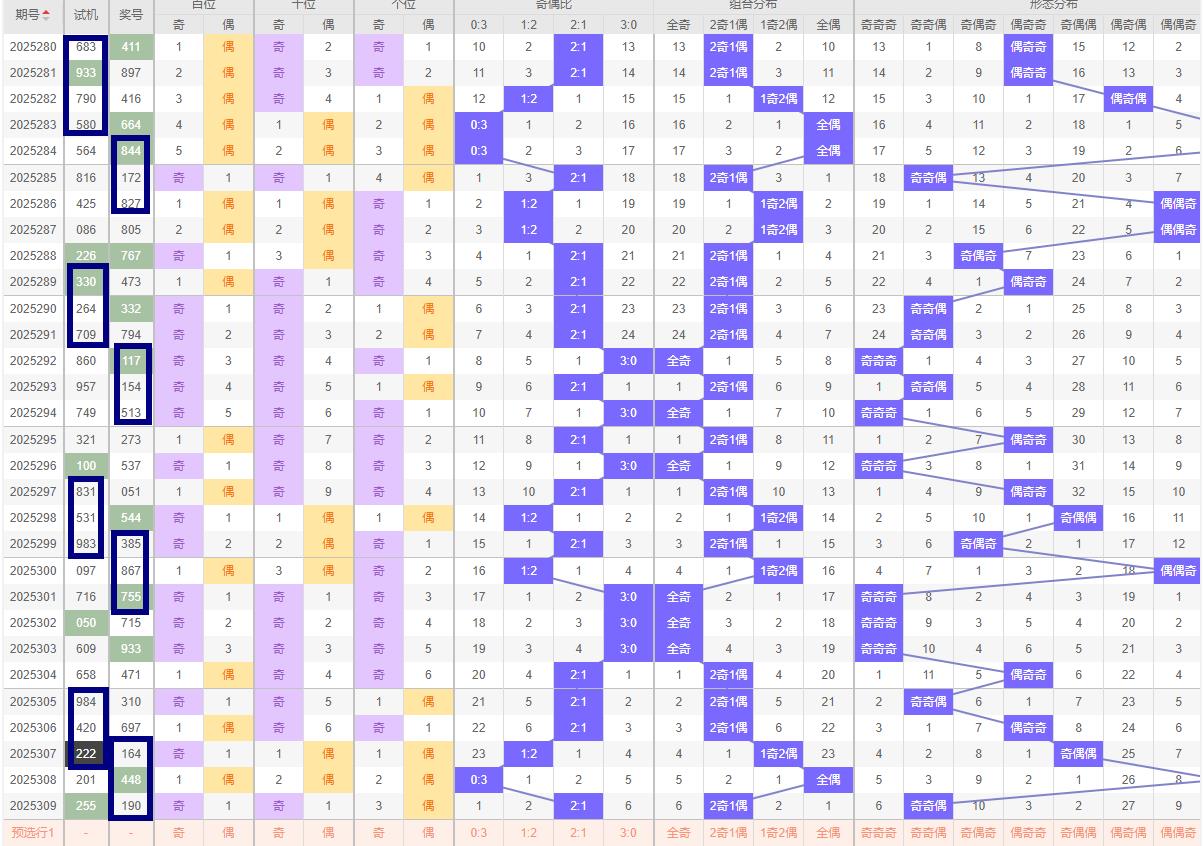 310期/福彩3D综合分析 :大小走势.奇偶比列及跨度分析等组号分析