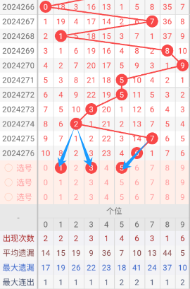 现在我给大家分析下,本期个位可能开出的号码,上期开出了6,264期开出了0号码球,265期开出了5号码球,266期开出了0号码球,267期开出了7号码球,268期开出了1号码球,269期开出了8号码球,270期开出了9号码球,271期开出了5号码球,272期开出了5号码球,273期开出了3号码球,274期开出了2号码球,275期开出了7号码球,276期开出了6号码球,根据这几期的走势和历史50期内的走势对比,我们可以先考虑本期可能会出小号,下面我给大家推存个位可能开出的几个号,个人比较看好135,个位我们就先暂定这两个号。本期重点关注1-8之间的号码,同时关注遗漏期数较大的号码。按最近遗漏走势,开了遗漏期数较大之后开遗漏期数小的可能性比较大。