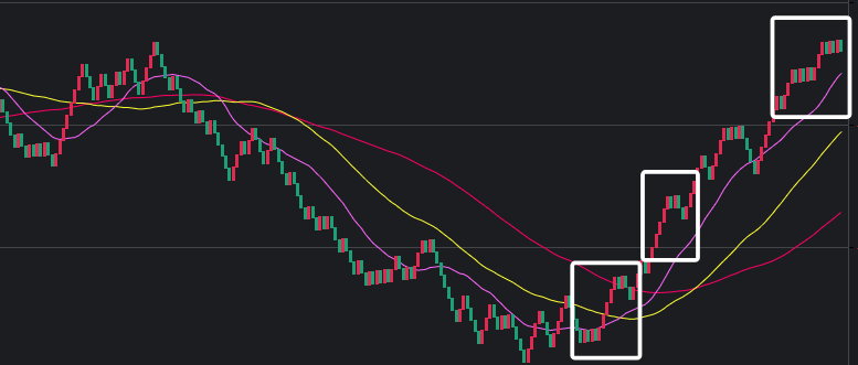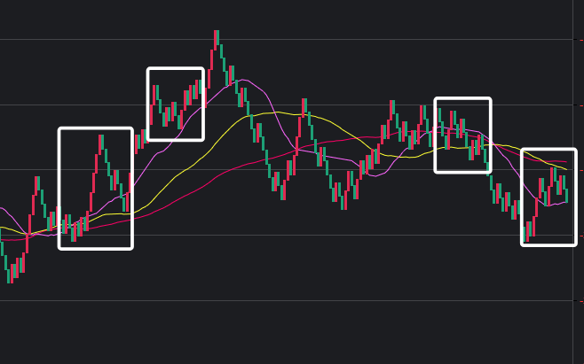 可以看到一些规律,在粉框中,如果一致,那么接下来这些跨度也会出。