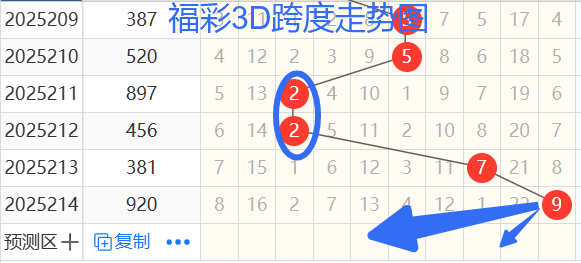 依次是52279跨度,按照路数转换关系来看,那么跨度我们暂定258147跨,本期个人比较看好4 8跨。