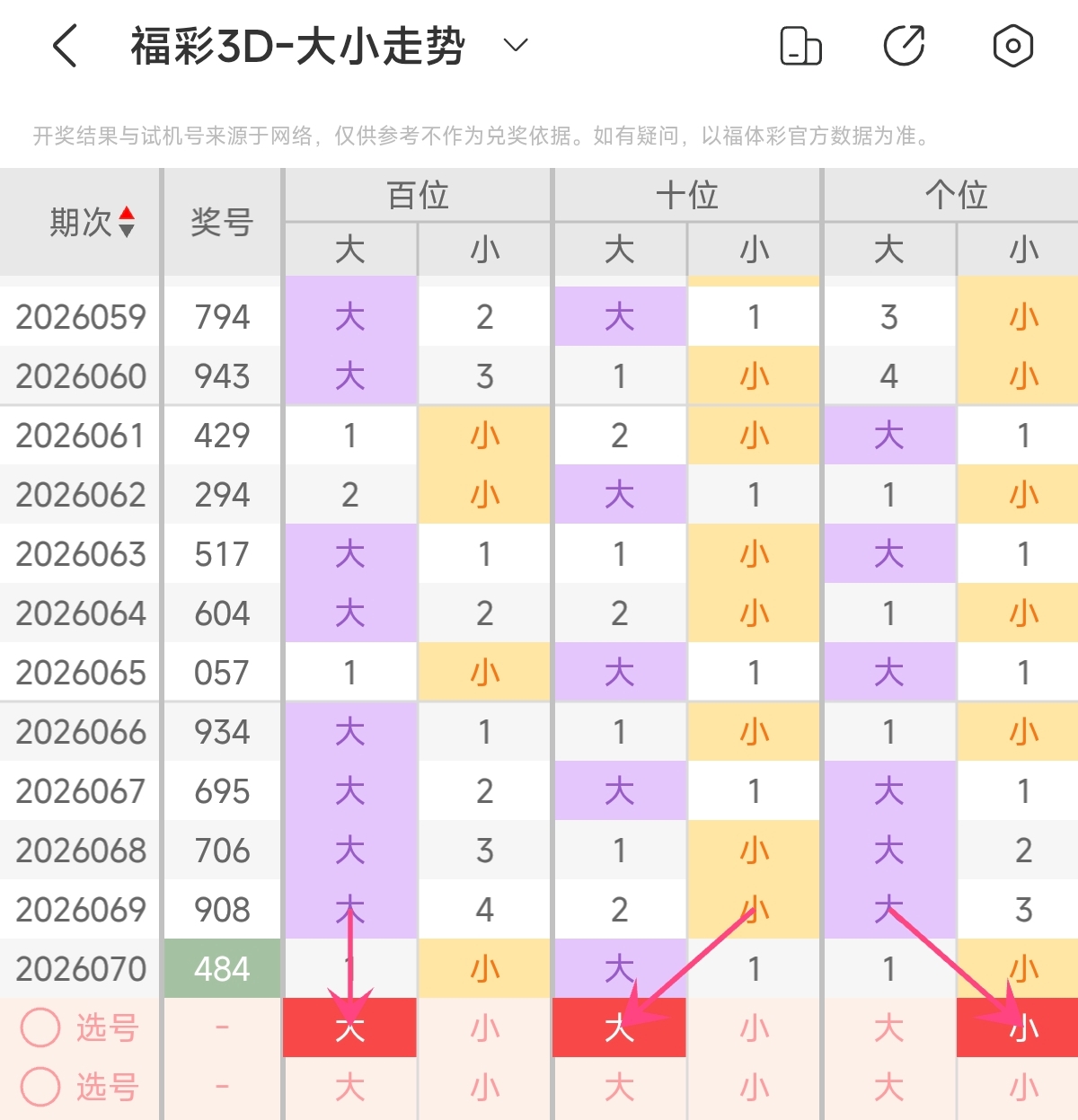 首先让我们回顾一下上期福彩3D第2026070期开奖号码为484,为组三形态,大小比为1:2,奇偶比为0:3,跨度为4,和值为16。