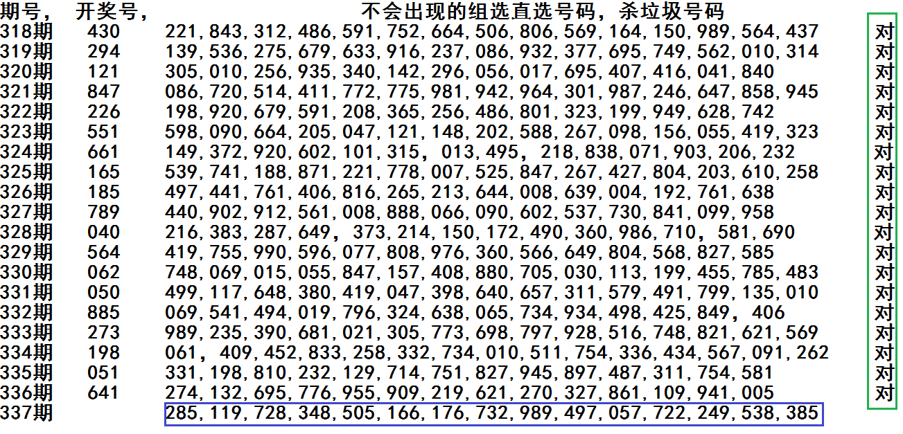 杀垃圾直选,垃圾组选号码,上期正确