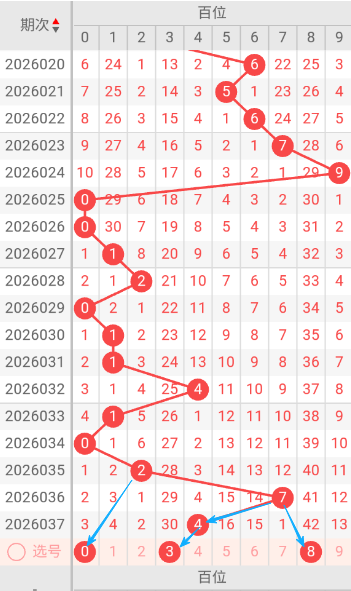 现在我给大家分析下,本期百位可能开出的号码,上期开出4,026期开出了0号码球,027期开出了1号码球,028期开出了2号码球,029期开出了0号码球,030期开出了1号码球,031期开出了1号码球,032期开出了4号码球,033期开出了1号码球,034期开出了0号码球,035期开出了2号码球,036期开出了7号码球,037期开出了4号码球,根据就近几期的走势和历史30期内的走势对比,我们可以先考虑本期可能会出双号,下面我给大家推存百位可能开出的几个号,个人比较看好038,百位我们就先暂定这几个号。本期重点关0-8之间的号码,同时关注遗漏期数较小的号码。按最近遗漏走势,开了遗漏期数较小之后开遗漏期数大的可能性比较大。