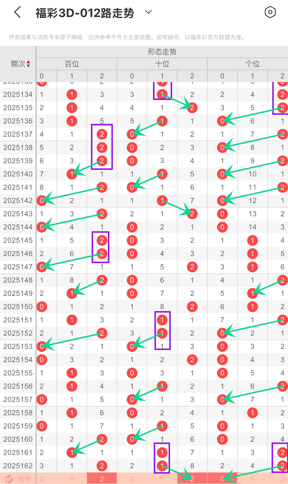 根据上期开出1路连下分析,0路出号频率有起伏,回补动作明显,在其他路数主导后,常能看到0路回补,1路出号有连下周期,连下后会切换为2路或0路补充,形成路数轮转,2路出号偶有连下,且回补箭头显示,当2路沉寂时,其他路数活跃,之后2路又会借助回补回归,体现出十位各路此消彼长,连下与回补共同构建走势节奏,本期参考回补2路(258)