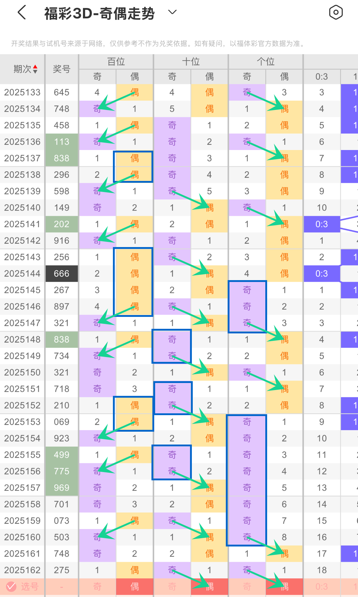 根据上期开出回补奇数分析,奇数频繁出现长周期连下,凭借强大惯性在多期内持续主导出号,构建出强势区间,期间偶数难以突围。当奇数连下的势能逐渐耗尽,偶数会集中借回补趋势填补出号空白,实现奇偶出号切换。此外,偶数偶有短连下表现,连下后奇数也会快速回补,整体形成奇数长连下—偶数集中回补—奇偶小交替模式,个位奇偶因连下时长、回补强度的差异,走势波动更具冲击力,连下与回补的力量对冲,本期参考回补偶数(02468)