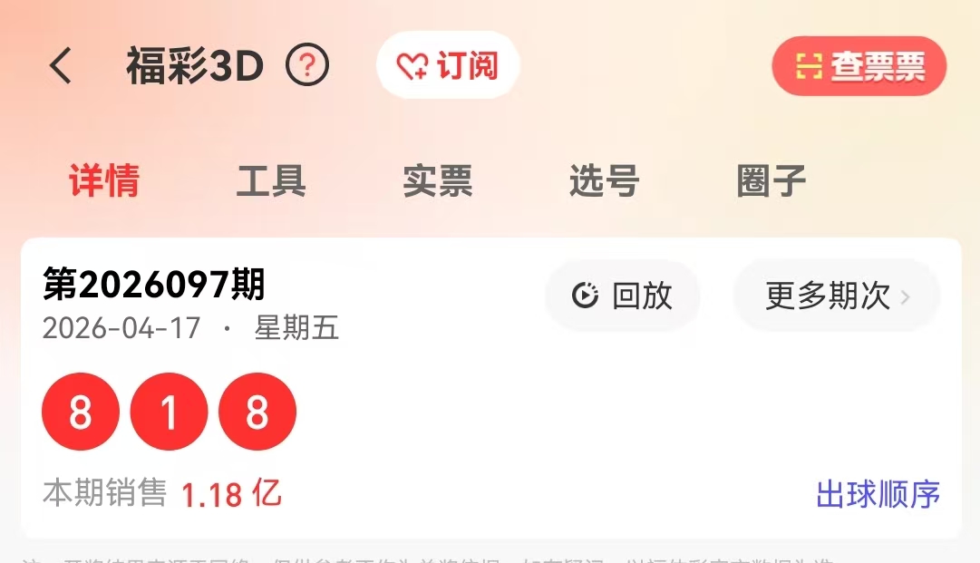 回顾上期开奖上期开奖号码818,形态:组三、大小大、偶奇偶、和值17、跨度7、012路:212