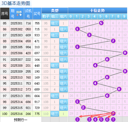 3D上期百位开出的7号球,这个奖号是一个重码回补落位趋势也是一个比较好的符合百位上的落位点,先来看8号球这里还是有机会继续走出一个常搭配的趋势也是一个冷码回补号码,还有一个就是0号球和1号球这里的号码落位形态的概率在这里的机会还是很好的要注意防守一码就可以了这里的两码是冷热号,然后9号球这里要注意是一个折返回补落位趋势要注意防守,4号球在百位上要注意可能有机会走出小周期的落位注意防守。