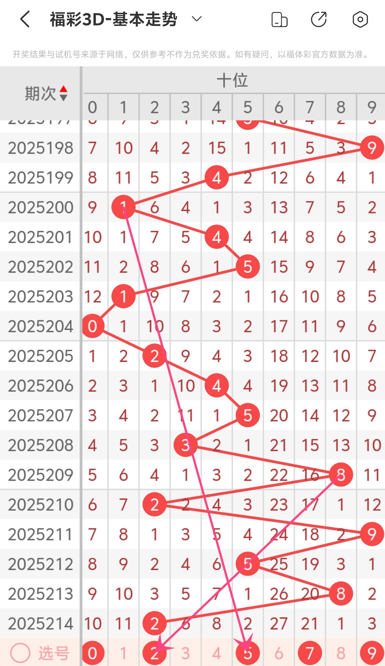 上期十位开出2,本区与上期的跨度为6,本期我们可以从上面走势图中看出选号的思路,2为重码带斜连走势,5为斜连走势跨度为三,综合以上分析,本期十位推荐:02579