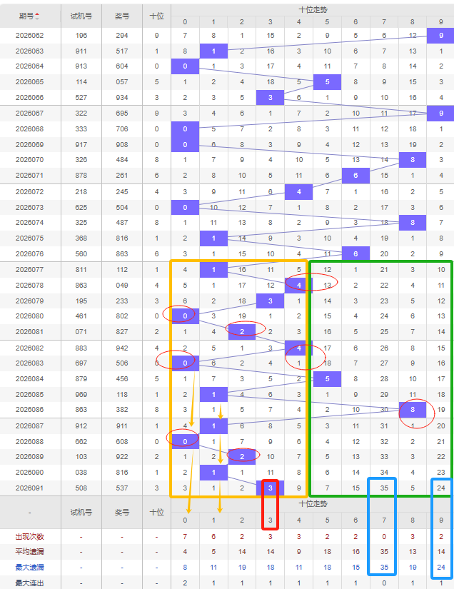 福彩3D第2026092期个位先分析奇数偶数,近十五期开出奇数号5期,开出偶数号10期,开出偶数号的概率比开出奇数号的概率大。近十余期都是奇数偶数间隔开出的,上一期又开出了奇数7号,本期还是看好开出偶数,建议考虑遗漏期数较大的偶数号,比如0号、4号遗漏十期以上且达到平均遗漏期数和最大遗漏期数,0号还是个位遗漏最大的号,都可以防冷号开出。隔断号可以考虑8号,本期若开出则形成2-3的形态。