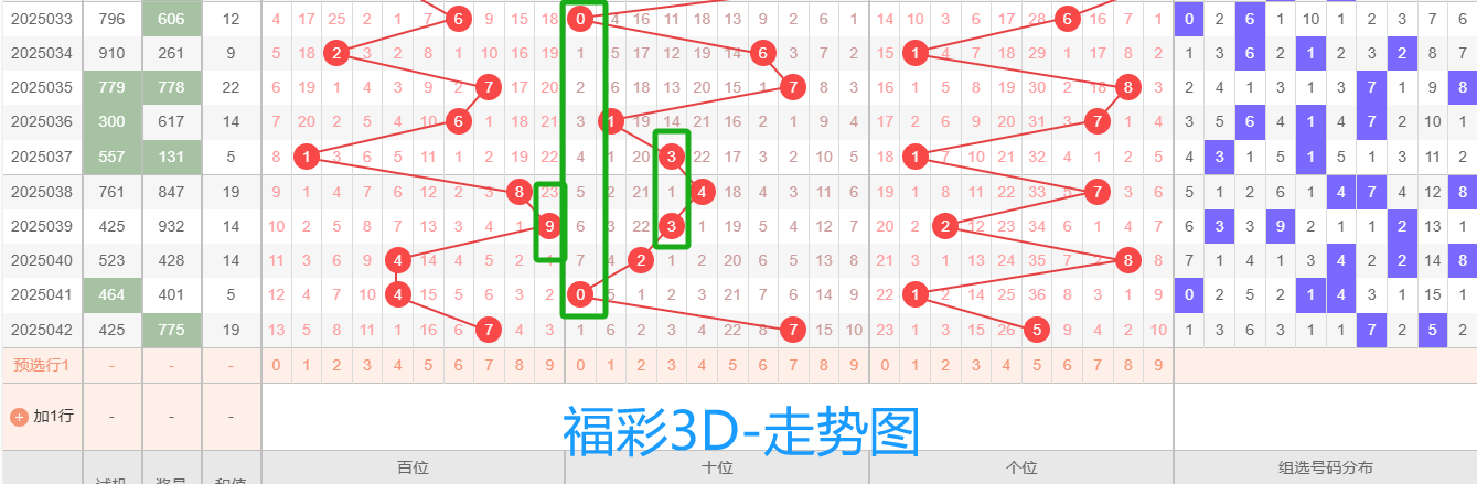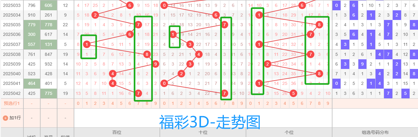 然而,随着期次的推移,质数(如2、3、5、7等)开始逐渐占据主导地位,尤其是数字7的表现尤为突出。它频繁出现在百位和十位位置,展现了强势的质数走势。整体来看,质数和合数的比例在最近的开奖中变得相对平衡,但质数的走势明显偏强,这也为接下来的选号提供了重要的参考。尤其是在百位和十位的选择上,质数可能会更具优势。