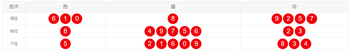 通过以上数据统计图表可以得出热温冷号的分布和号码欲出几率的两个要素。