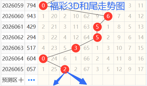 们依次是55302和尾,按照012路排序是22002路和尾,后面两期不是同路,今天就是1路和0路的和尾,为什么这么讲呢,这个是个大概率的问题,也是根据长期的研究规律定的,准确率相当高,我定了1路和0路的和尾,也就是1470369尾,那么我们再来看和值,按照和值除3余数的话,可以分为余0 1 2路. 那么我们来看,61期和值15余0,62期和值15余0,63期和值13余1,64期和值10余1,65期和值12余0,那么本期看和值看余1和余2,根据上面的和尾那么就只有11 14 1710 13 16 19和值。