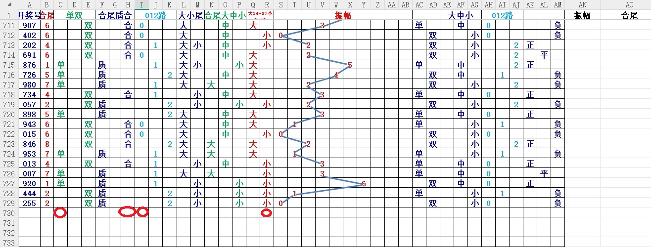 如上图2,012路分析,01路尾走比较好,关注0369147尾;