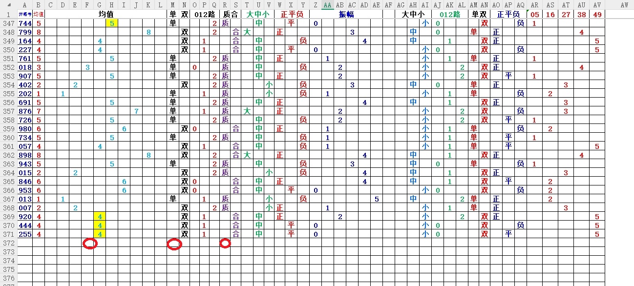 均值:就是开奖号每各数的总和除3,然后得到的余数,如果不够整除可以+1,-1,直到被整除得的数就是均值