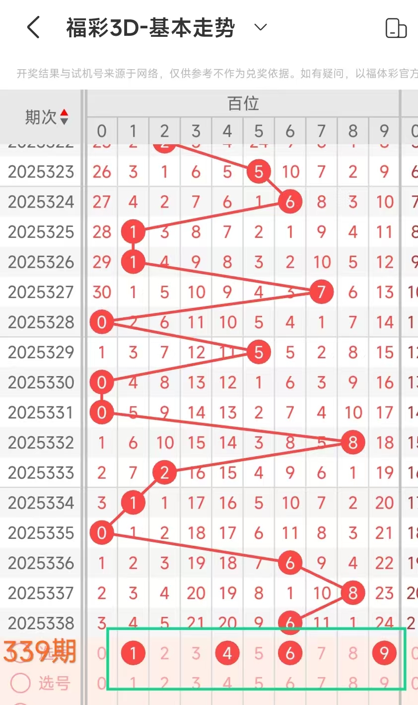2、当十位开出8后下期开出:66847,经统计0号出0次、1号出现0次、2号出现0次、3号出现0次、4号出现1次、5号出0次、6号出现2次、7号出现1次、8号出现1次、9号出现0次。观察发现6号还没有出,本期可以考虑。
