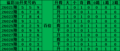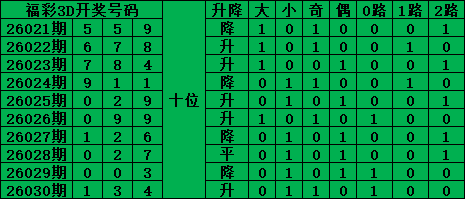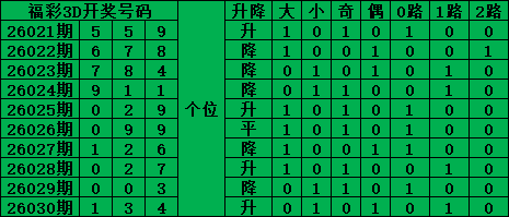 综上所述,福彩3D第2026031期号码推荐:
