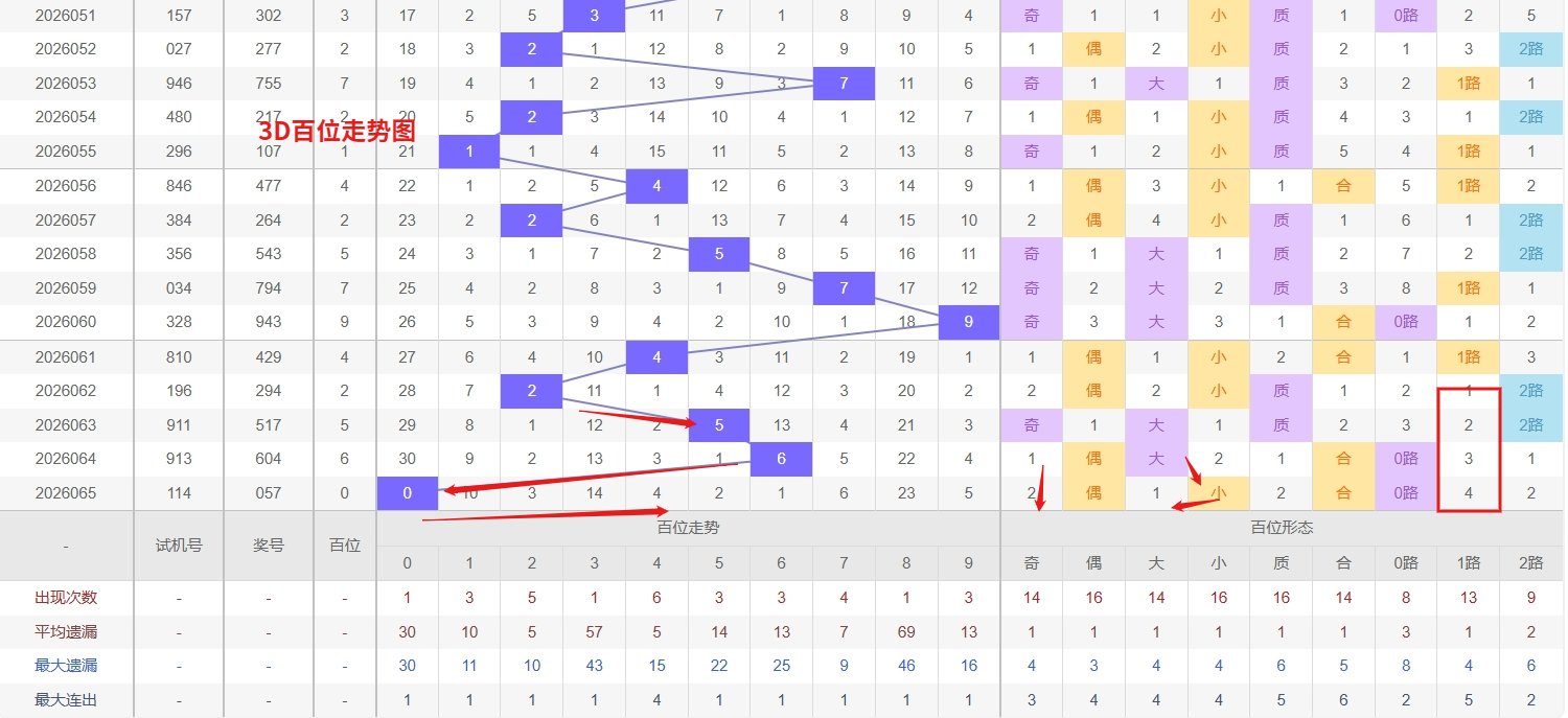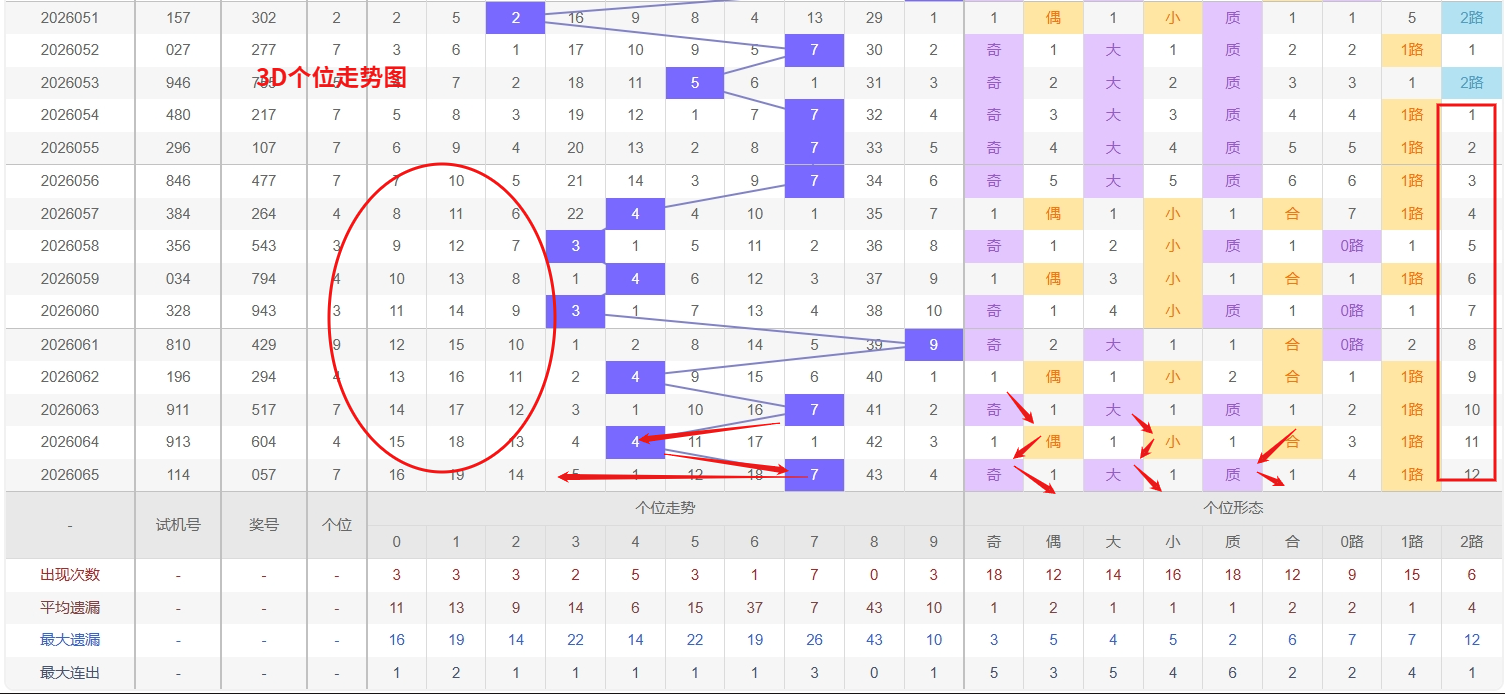 福彩3D个位分析:第2026065期个位开出号码7属于大奇数后端,从以上个位走势图中可以看出近100期的大小比约为53:47奇偶比约为51:49大小奇偶数据上有点差异有需求但不是太明显,不太好看这时就要借助连线走势和遗漏数据来帮助我们缩水号码。上期个位落号“7”大奇数1路号码球,号码开出了3振幅,连续多期的小振必被大振幅取代幅符合我们的预期,那么本期我们在个位考虑振幅走势走前依然要转变思路考虑大振幅,具体考虑(1-5)个振幅是我们主要的方向,那么在对个位落号情况进行系统的分析时我们可以明显的看到个位号码走势呈现大范围震荡,尤其是在号码的落位特点上表现的尤为突出,那么本期我们在个位分析时就要注意号码的风险,避免出现踏空。近期3D个位走势的冷热分布来看,号码6与8已成为当前最值得关注的两个冷态点位。这两个数字的遗漏期数均已远远超出其理论出现周期,属于典型的深度冷码。在彩票号码的运行规律中,这种长期未出的冷码往往会在某个节点形成集中回补的态势——因为概率上的偏差越大,回归平衡的动能也就越强。具体来看,6的遗漏时间较长,但其历史出现频率并不低,这意味着它随时可能迎来一波解冻行情;而8则处于更为极端的冷寂状态,因此福彩3D第2026066期个位看好01268。本文由一起彩钱是生命动力所著,请勿转载