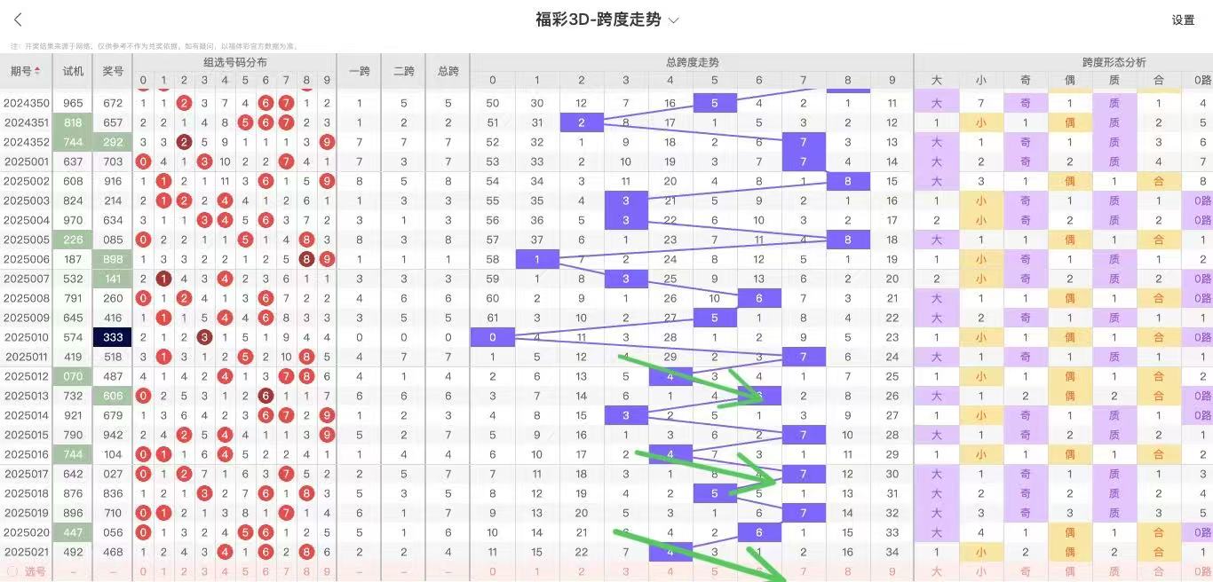 2025022期福彩3D跨度走势图如下: