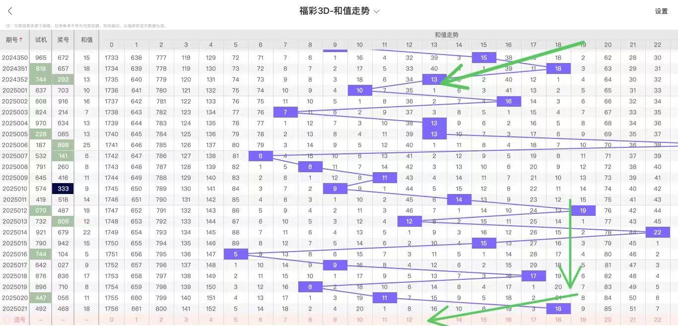 2025022期福彩3D和值走势图如下: