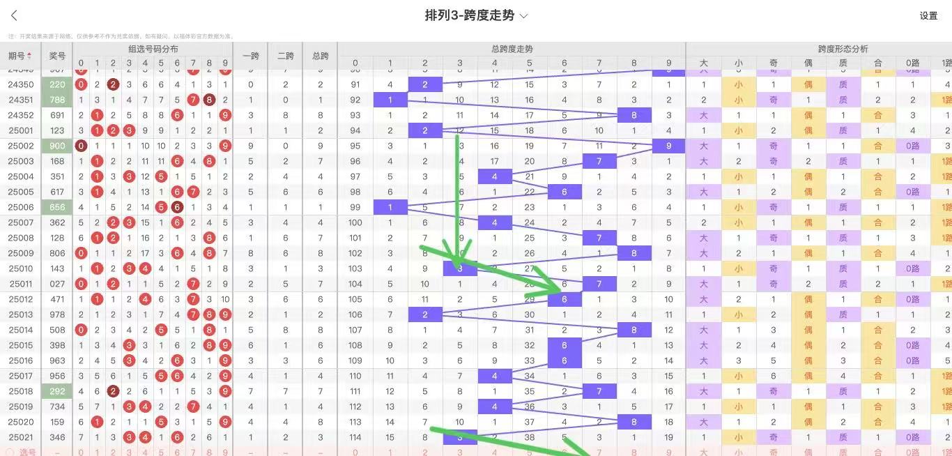 根据走势对跨度观察统计得到以下分析结果: