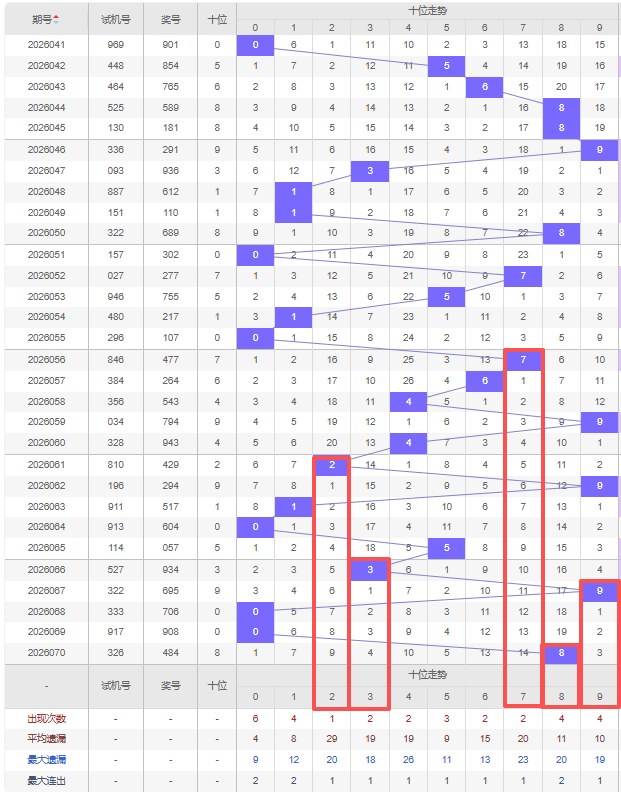 上期个位:4,近10期个位出号:9 4 7 4 7 4 5 6 8 4。最近10期大小变化分别:大小大小大小大大大小,奇偶变化分别:奇偶奇偶奇偶奇偶偶偶,质合变化分别:合合质合质合质合合合,根据近10期规律本期综上所述个位出号推荐5个号码:0 1 4 7 9。