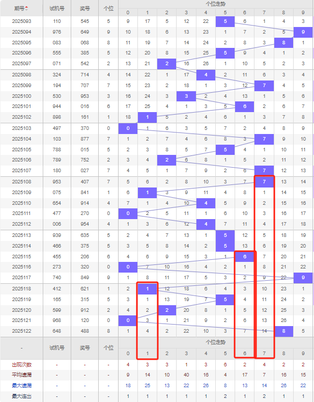 上期个位:8,近10期个位出号:5 5 6 0 9 1 5 2 0 8。最近10期大小变化分别:大大大小大小大小小大,奇偶变化分别:奇奇偶偶奇奇奇偶偶偶,质合变化分别:质质合合合质质质合合,根据近10期规律本期个位首选冷号遗漏14期的7号,次选遗漏7期的6号,防遗漏4期的1号,综上所述个位出号推荐5个号码:7 6 1 5 2。(出号概率由高排到低)。