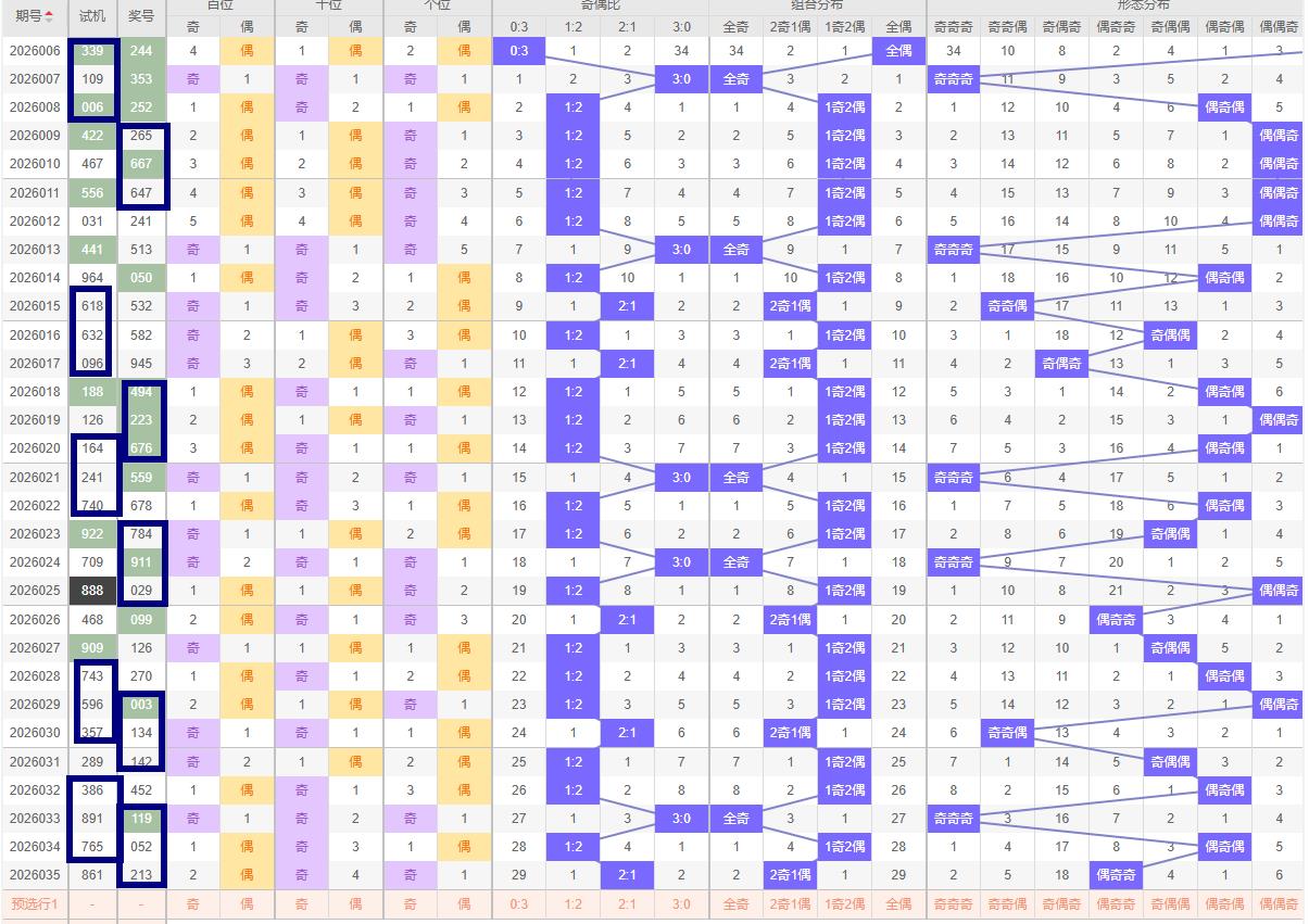 奇偶比例分析 - 奇偶比:035期号码213为偶奇奇形态,奇偶比例为2:1。结合历史数据与近期走势特征,本期可倾向于奇偶比为2:1的组合,即预测两位奇数搭配一位偶数。近十期奇偶比为15:15关注两奇一偶号码