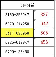 三胆码:672(3、4月份各错1)