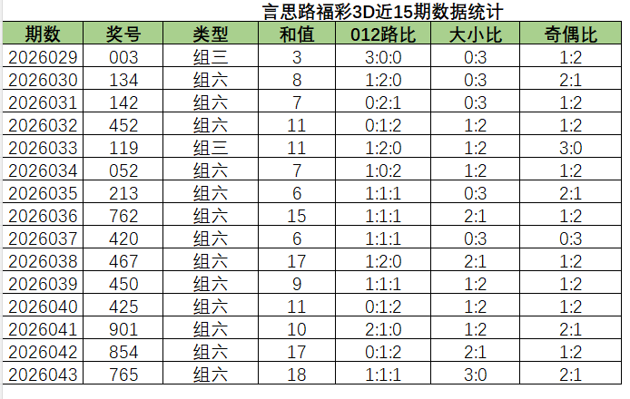 您好呀,欢迎来到言思路福彩3D专栏!
