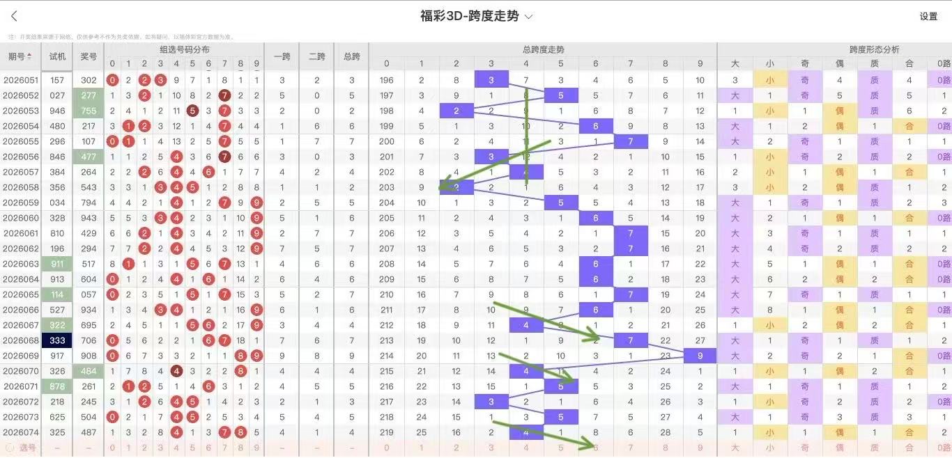 2026075期福彩3D跨度走势图如下:上期开出跨度4,而据观察近五期跨度大小走势为:小大小大小