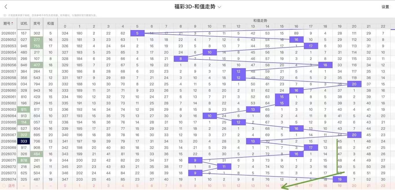 2026075期福彩3D和值走势图如下:上期开出和值19,和值在第2分区,而近百期开出和值19共7次,下期数据:4 7 17 19 21 11 根据和值9的下期钟摆走势来看上升趋势稳定,近期和值喜在第2分区活动,和值形态规律:偶:大和尾形态偶:大,那么本期重点推荐值范围是:9-19主偶形态