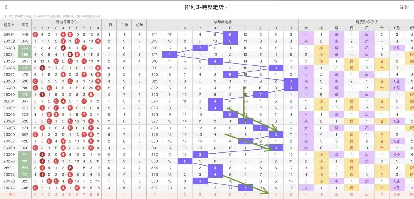根据走势对跨度观察统计得到以下分析结果:
