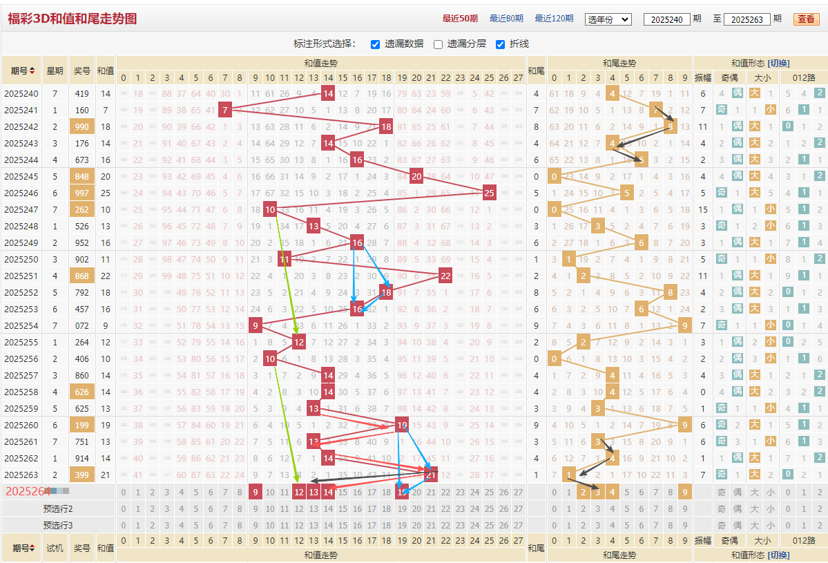 回顾上期开奖号399,和值21,跨度6,质合合,质合比1:2,奇奇奇,奇偶比3:0,小大大,大小比2:1。