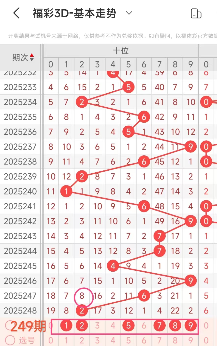 2、当十位开出2后下期开出:1998684959061,经统计0号出1次、1号出现2次、2号出现0次、3号出现0次、4号出现1次、5号出1次、6号出现2次、7号出现0次、8号出现2次、9号出现4次。观察发现1689号出现靠前优先选