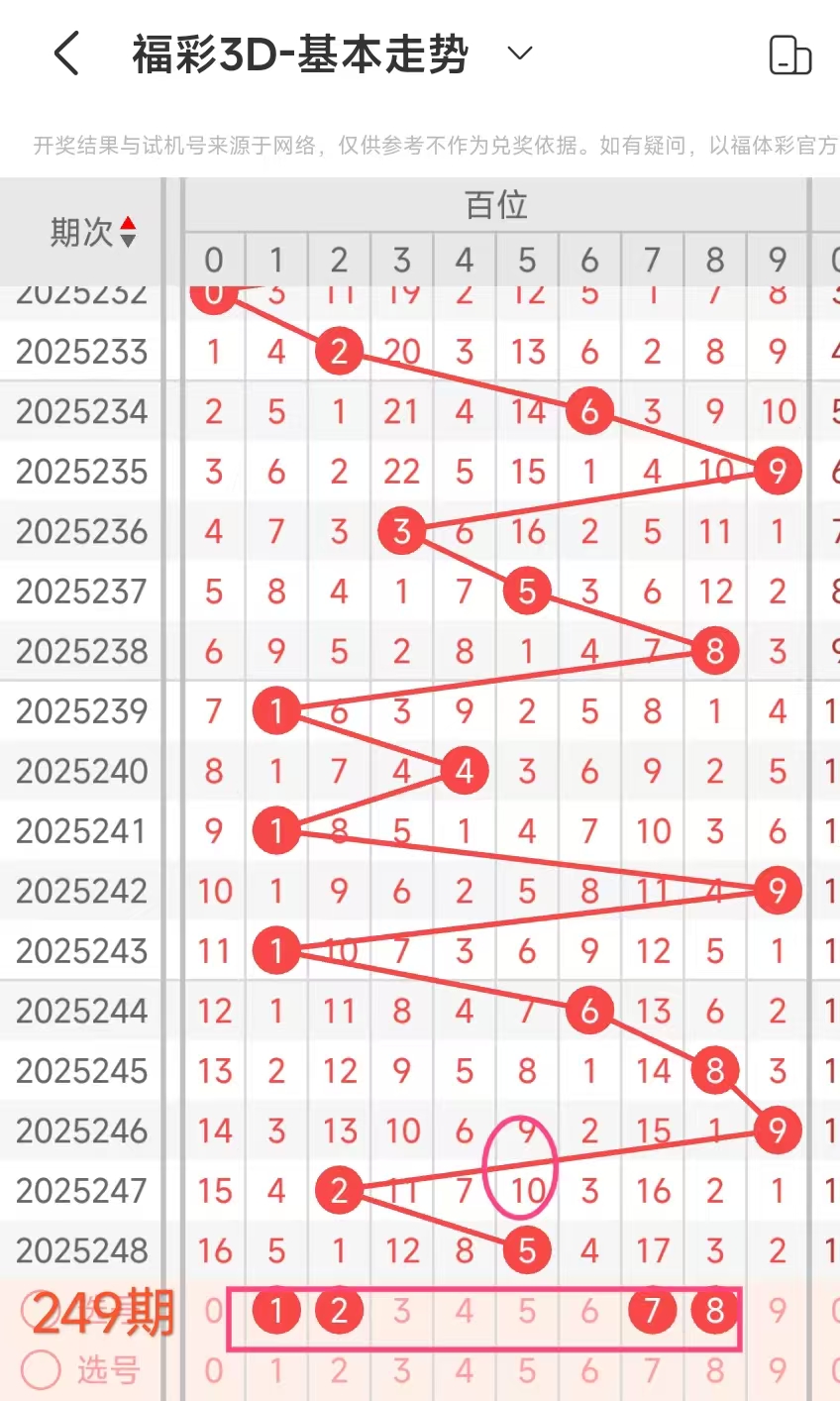 本文分别通过三个技巧对本期3D进行深度分析,这三个技巧分别为:技巧一(统计开奖号码对应下期开什么号码)、技巧二(分析往年同期数据)、技巧三(分析近23期开奖号码百十个分别遗漏情况)。