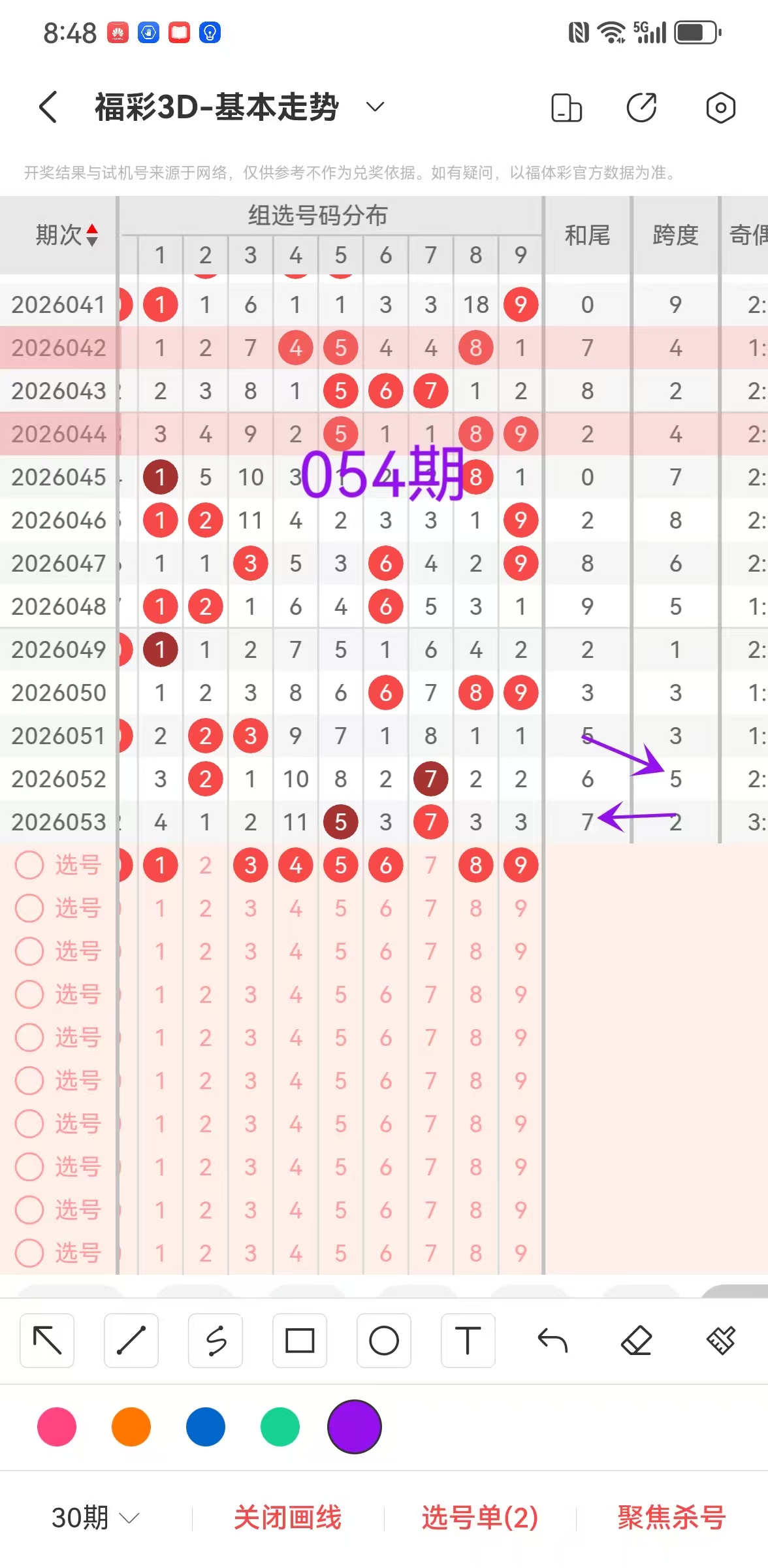 福彩3D054期分析思路,胆码连中7期,本期分享大底