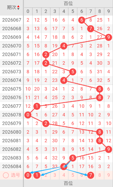 现在我给大家分析下,本期百位可能开出的号码,上期开出4,072期开出了2号码球,073期开出了5号码球,074期开出了4号码球,075期开出了8号码球,076期开出了8号码球,077期开出了1号码球,078期开出了0号码球,079期开出了2号码球,080期开出了8号码球,081期开出了8号码球,082期开出了9号码球,083期开出了5号码球,084期开出了4号码球,根据就近几期的走势和历史30期内的走势对比,我们可以先考虑本期可能会出小号,下面我给大家推存百位可能开出的几个号,个人比较看好017,百位我们就先暂定这几个号。本期重点关0-7之间的号码,同时关注遗漏期数较小的号码。按最近遗漏走势,开了遗漏期数较小之后开遗漏期数大的可能性比较大。
