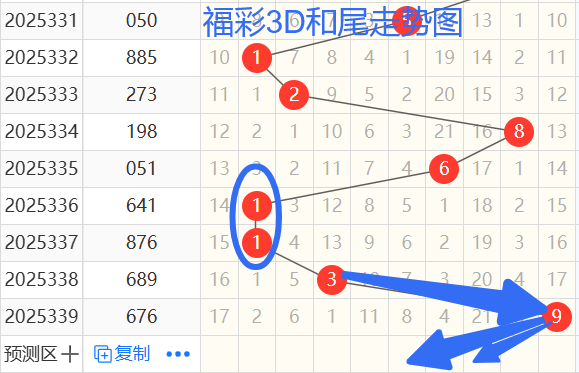 1)我们来看和尾,以335期——339期为例,如图们依次是61139和尾,按照012路排序是01100路和尾,后面两期是同路,今天就是1路2路的和尾,为什么这么讲呢,这个是个大概率的问题,也是根据长期的研究规律定的,准确率相当高,我定了1 2路的和尾,也就是147258和尾,那么我们再来看和值,按照和值除3余数的话,可以分为余0 1 2路. 那么我们来看335期和值6余0,336期和值11余2,337期和值21余0,338期和值23余2,339期和值19余1,那么本期看和值看余1余2,根据上面的和尾那么就只有 11 14 17 8 7 5和值