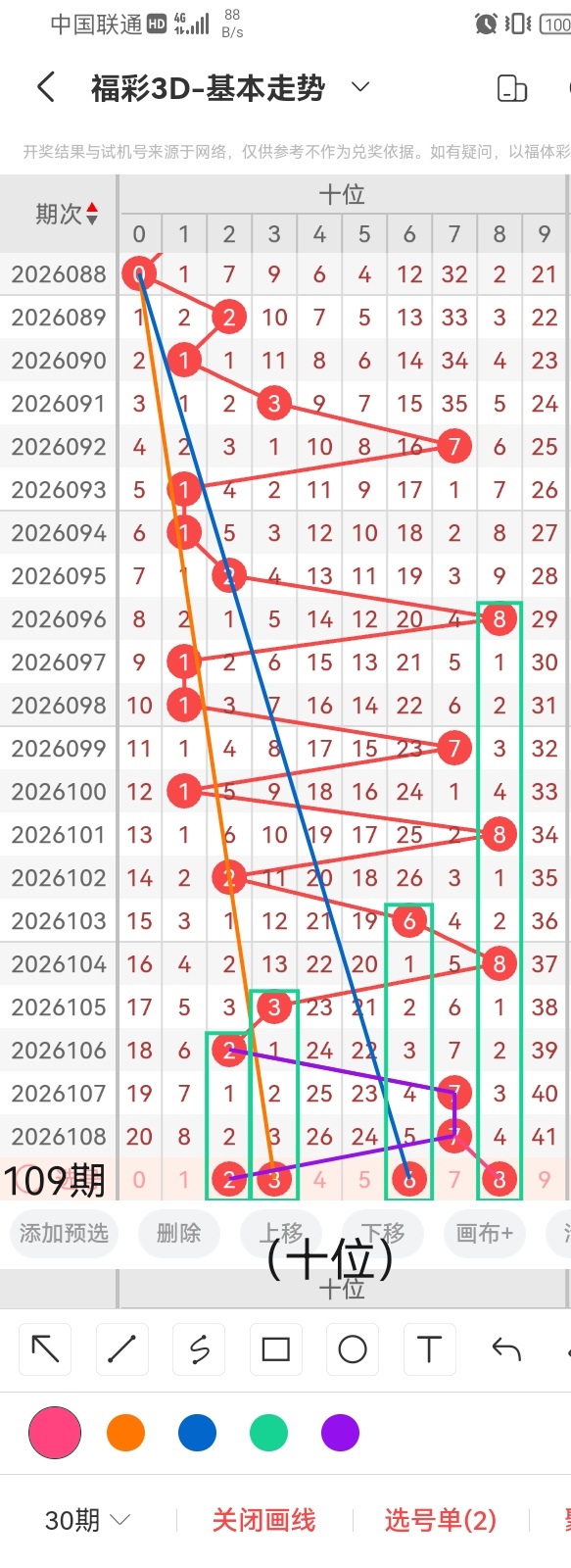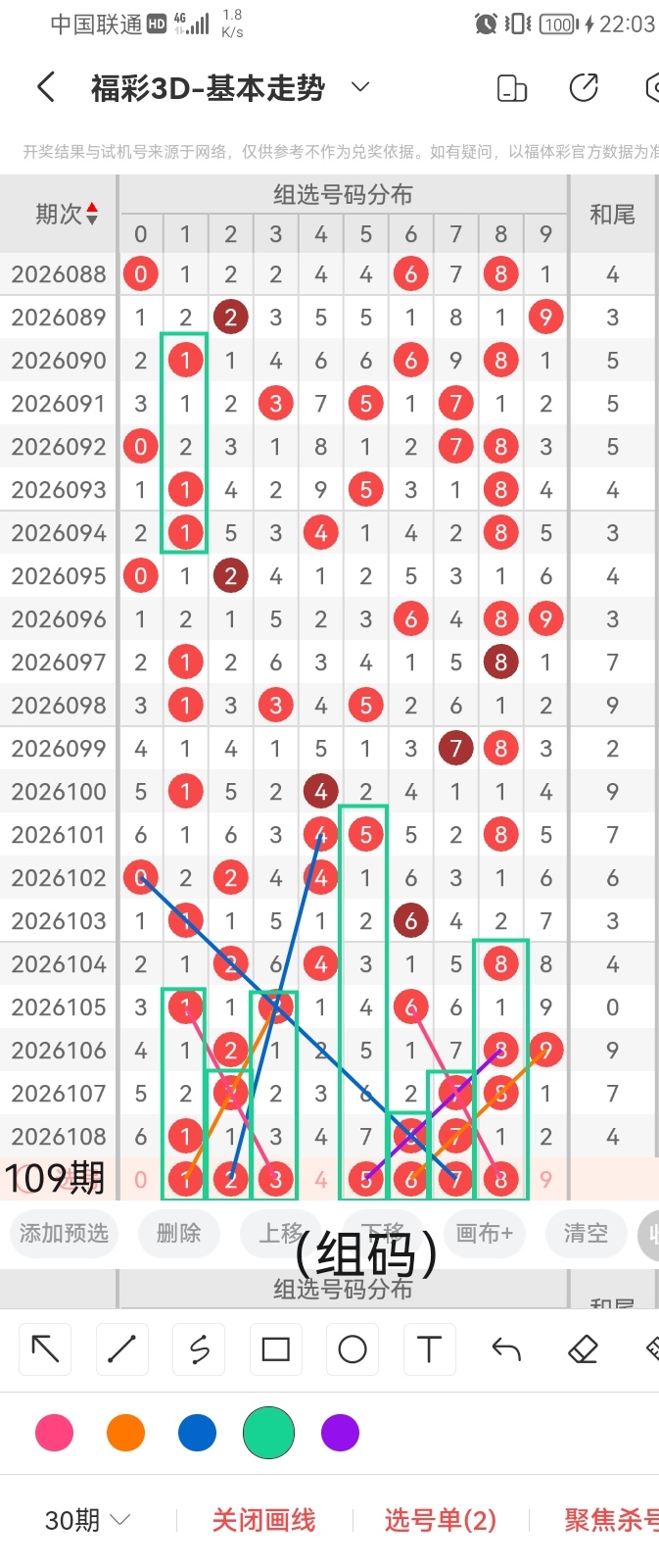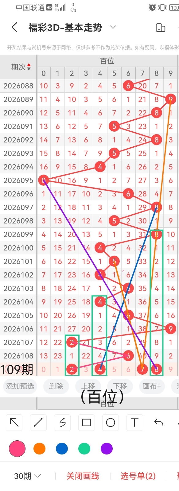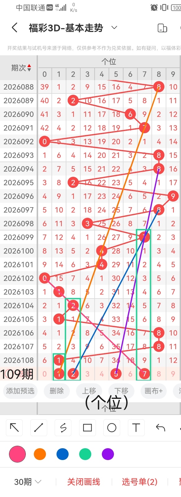 通过以上对上期的简单回顾,下面进入2026109期(下面简称本期)的选号分析:
