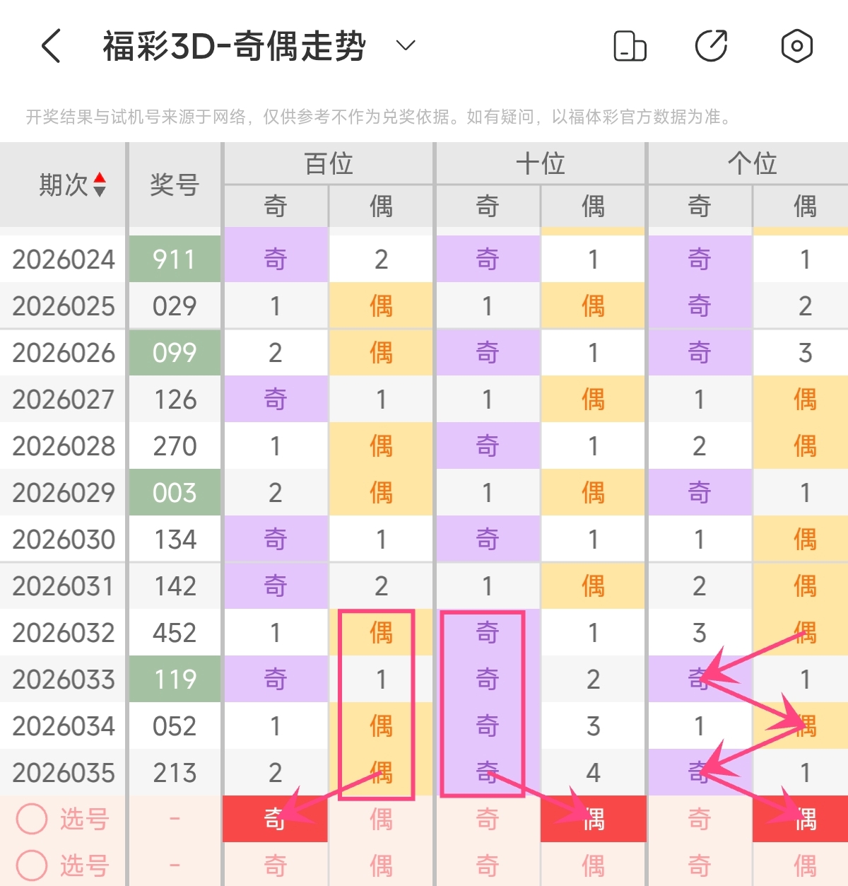 首先让我们回顾一下上期福彩3D第2026035期开奖号码为213,为组六形态,大小比为0:3,奇偶比为2:1,跨度为2,和值为6。