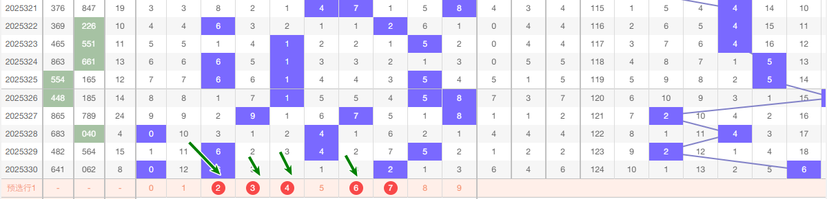上期跨度6跨 0路跨 从上图看 本期主2436防7跨 供大家参考