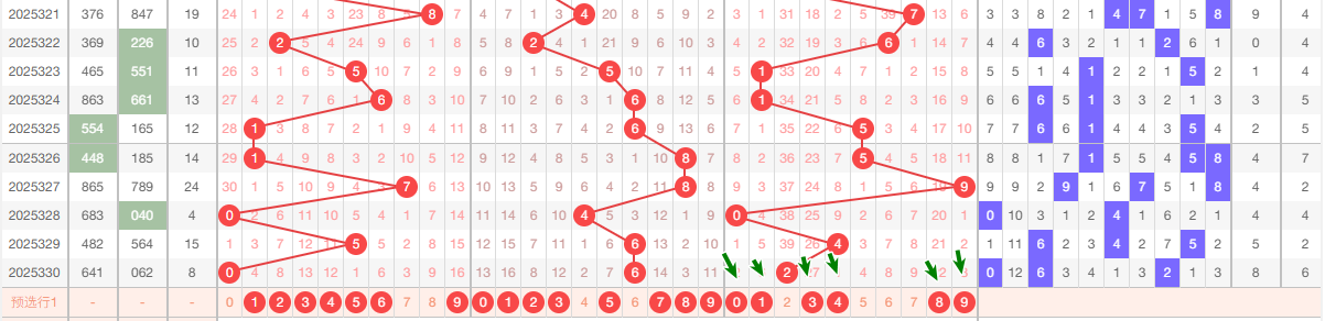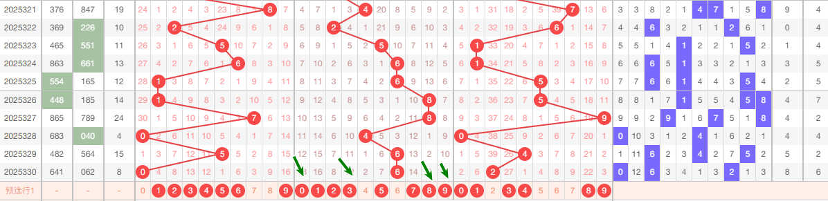 上期个位开出2,本区与上期的跨度为2,本期我们可以从上面走势图中看出选号的思路,本期 个位推荐关注:23689