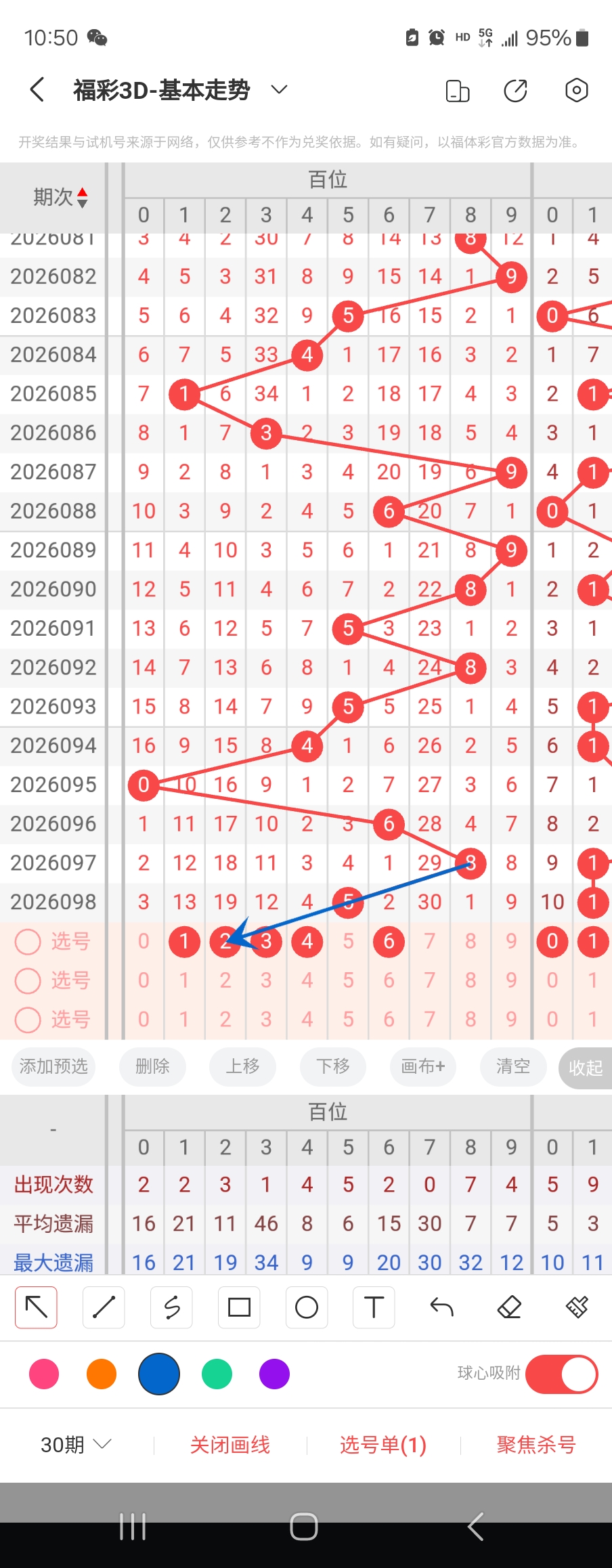 百位走势标注如下图;