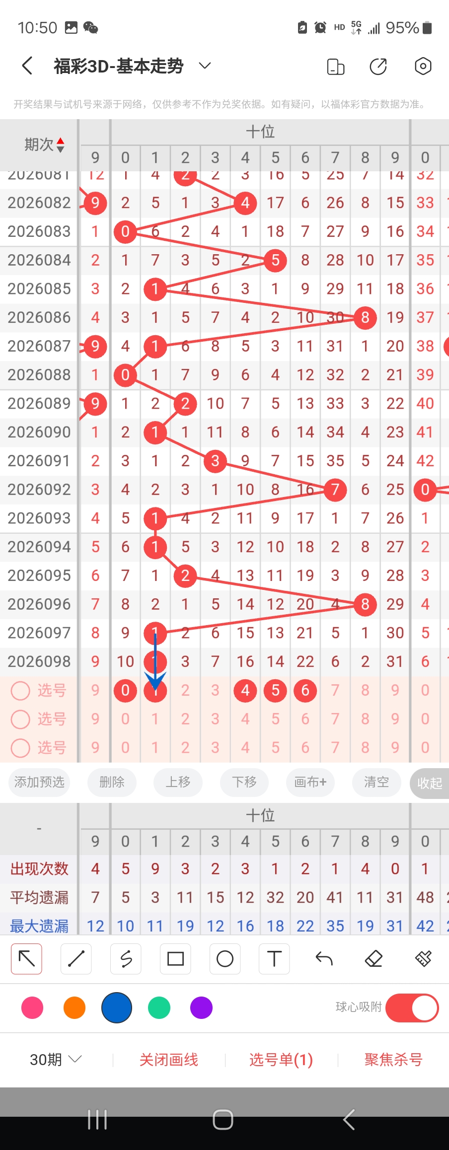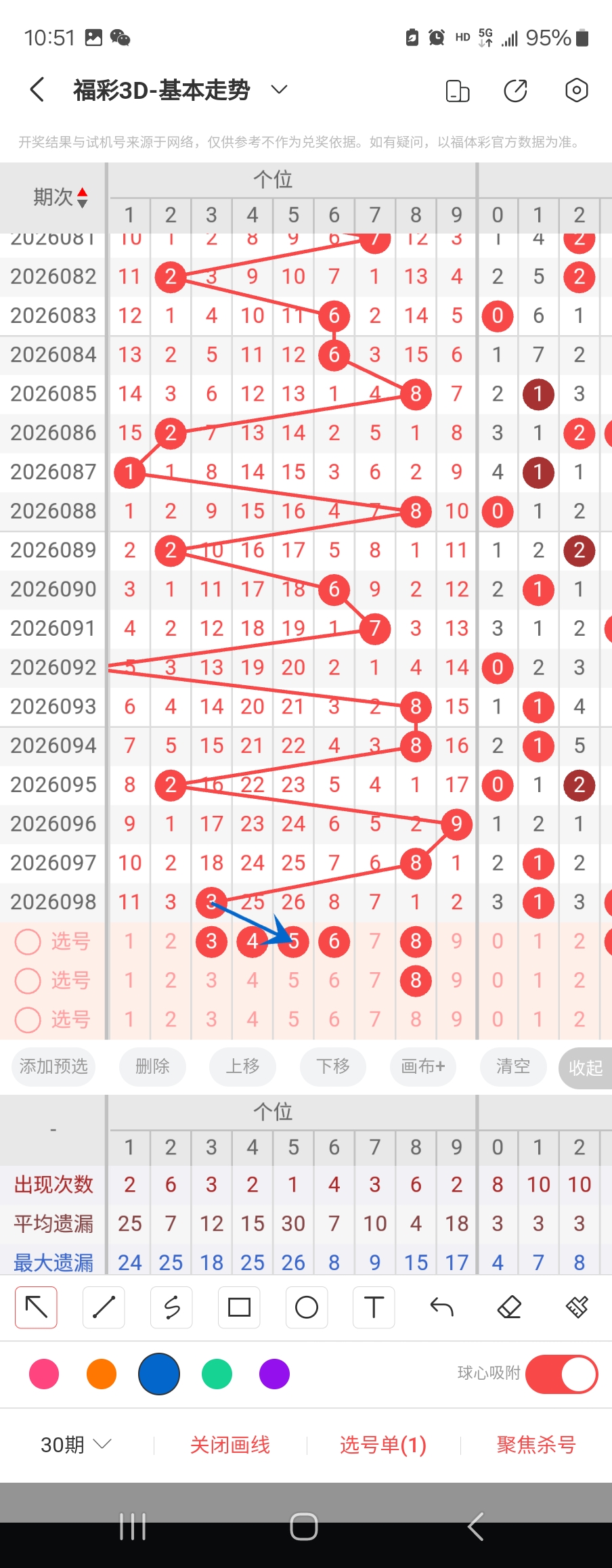 个位走势标注如下图;