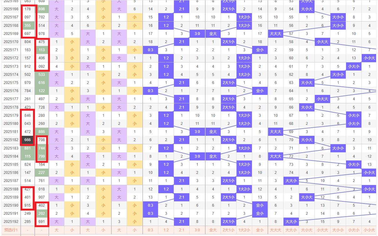 193期福彩3D综合分析报告:奖号回顾 在上一期(192期)的福彩3D开奖中,奖号为691,跨度为8呈现组六形态。其中,大小比为2:1,显示出大号相对活跃;奇偶比为2:1,奇数号码占据优势;012路比为2:1:0。