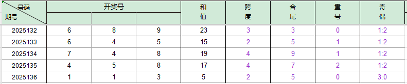 2025132期开奖号码689,我们可以看出近30期百位6出现3次,十位8出现2次,个位9出现3次。